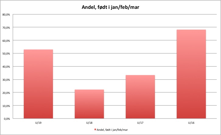 Denne viser, at der faktisk er hele 68,2 %, der er født i januar, februar eller i marts måned på U/16-landsholdet, der skal spille mod Østrig den 8. og 10. oktober.